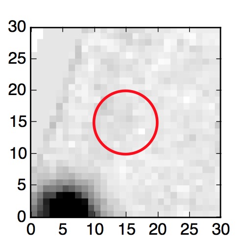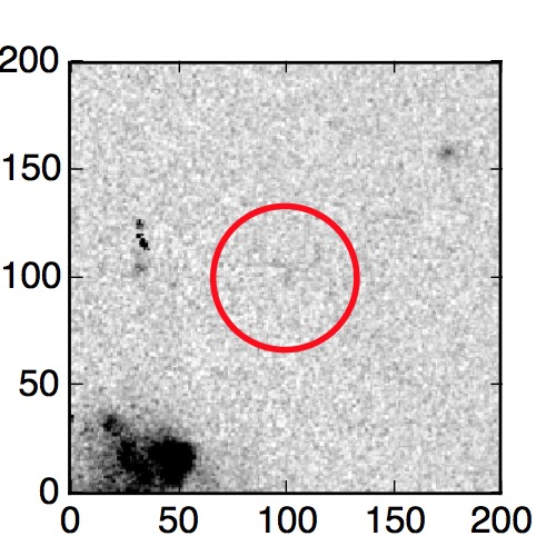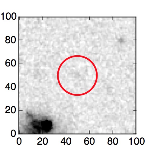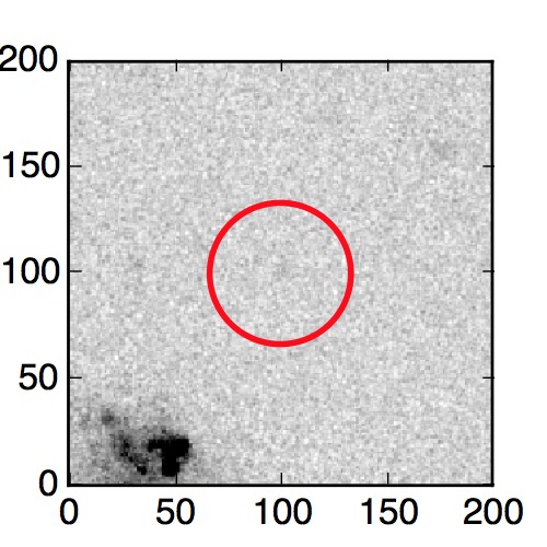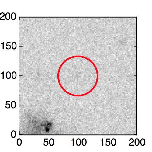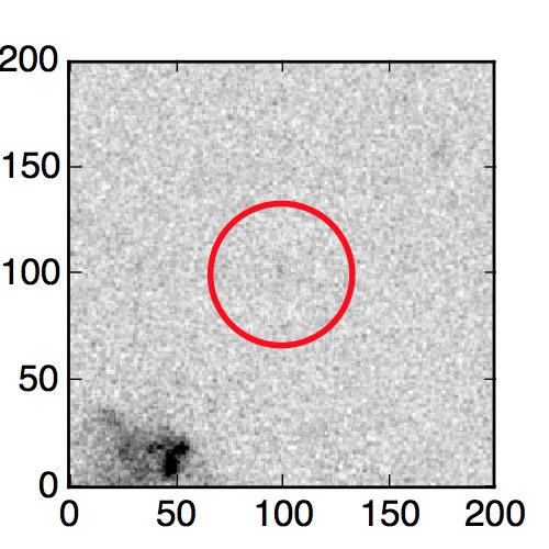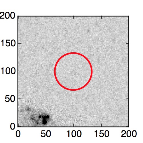 The red circle in the various panels is 1" in radius. The images are 6"x6".