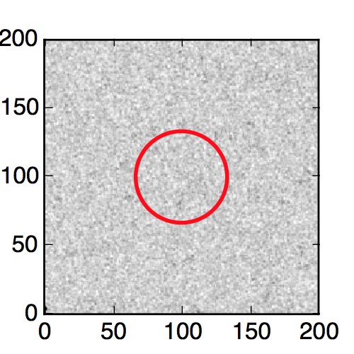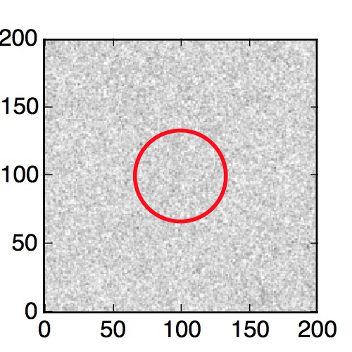 The red circle in the various panels is 1" in radius. The images are 6"x6".