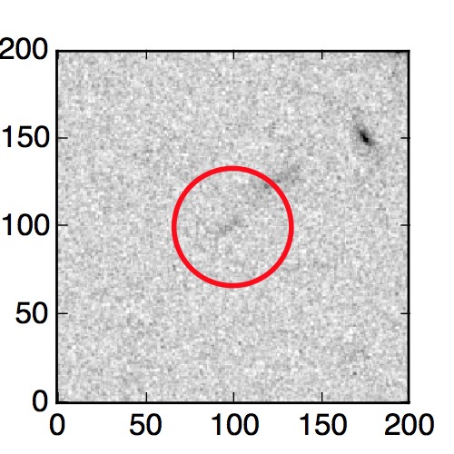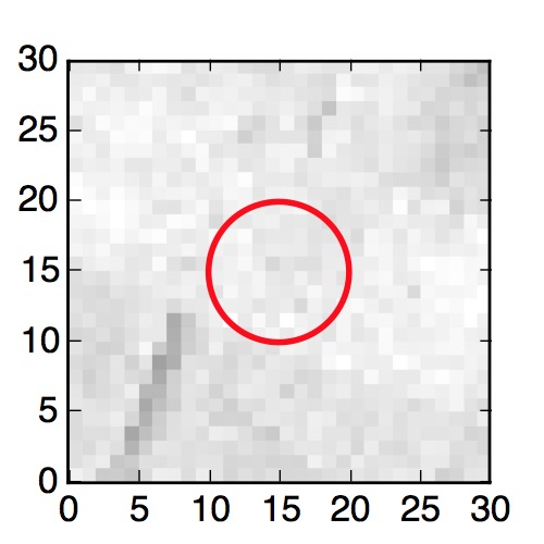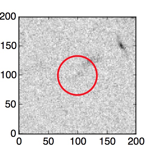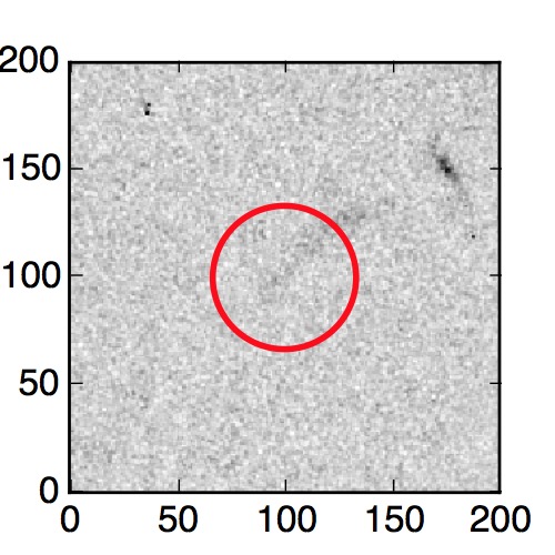 The red circle in the various panels is 1" in radius. The images are 6"x6".