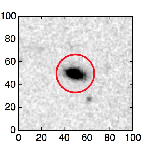 The red circle in the various panels is 1" in radius. The images are 6"x6".