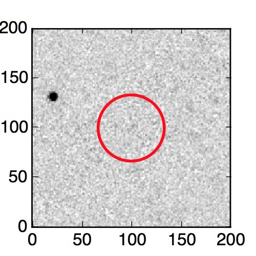 The red circle in the various panels is 1" in radius. The images are 6"x6".