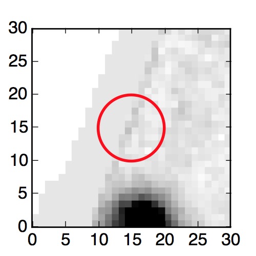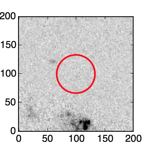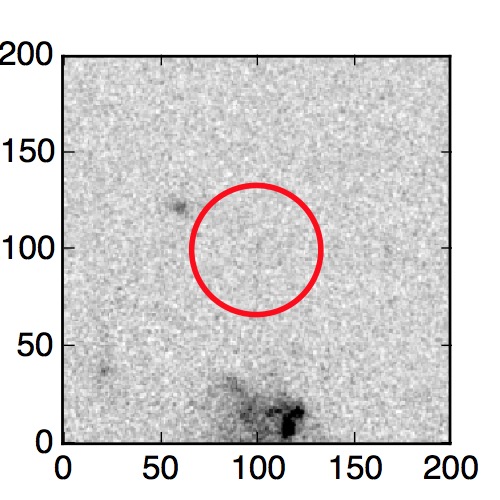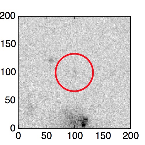 The red circle in the various panels is 1" in radius. The images are 6"x6".