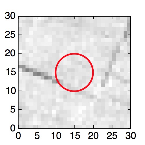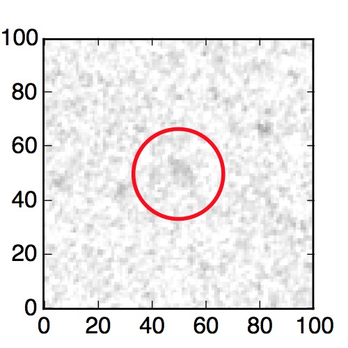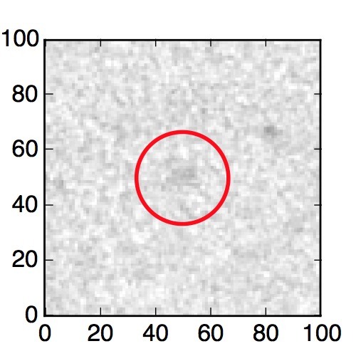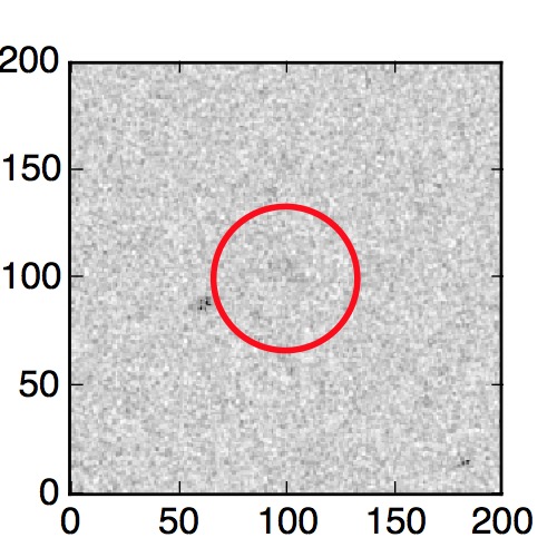 The red circle in the various panels is 1" in radius. The images are 6"x6".