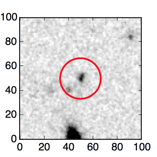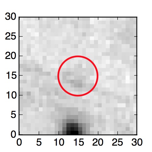The red circle in the various panels is 1" in radius. The images are 6"x6".