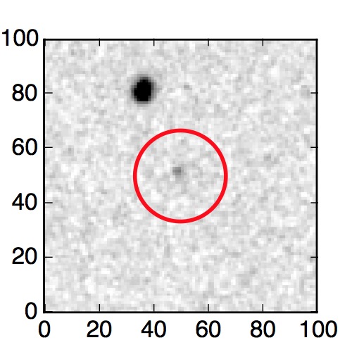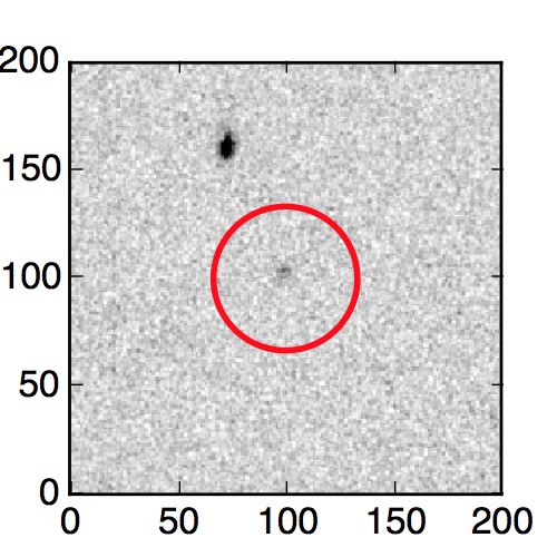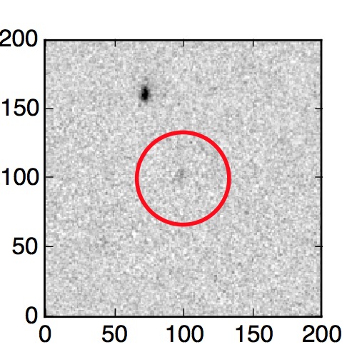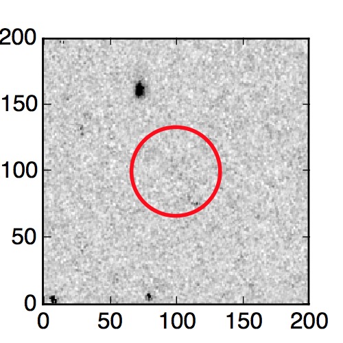 The red circle in the various panels is 1" in radius. The images are 6"x6".