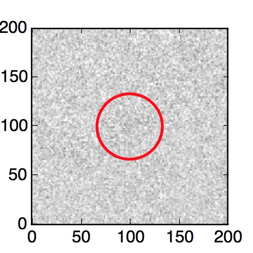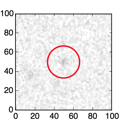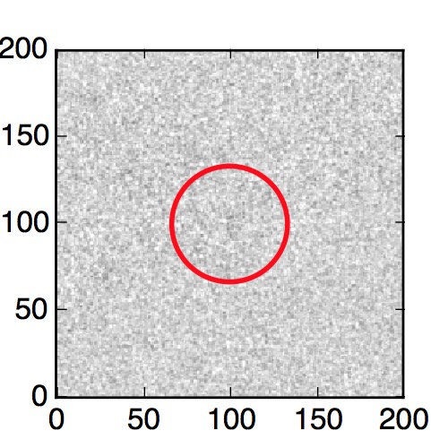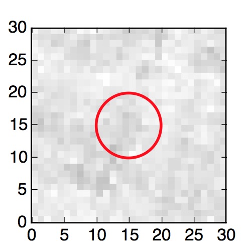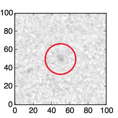 The red circle in the various panels is 1" in radius. The images are 6"x6".