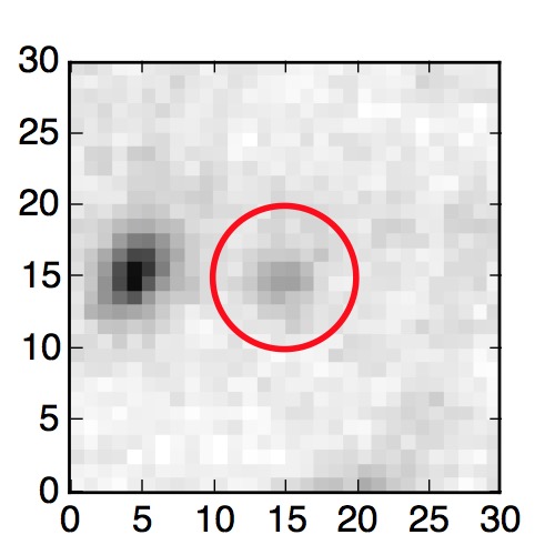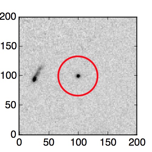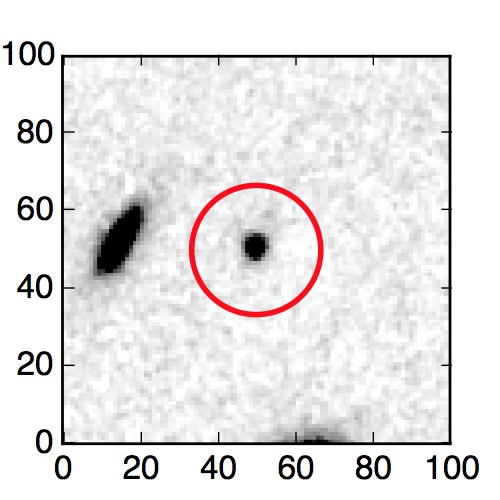 The red circle in the various panels is 1" in radius. The images are 6"x6".