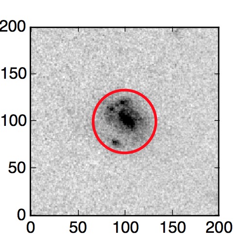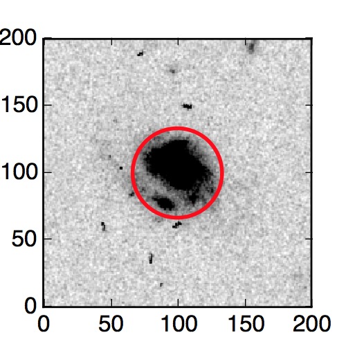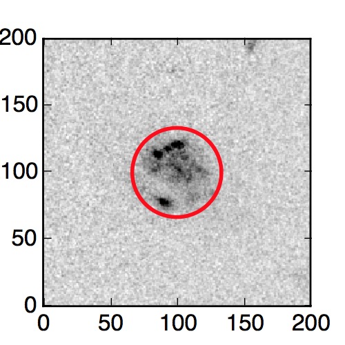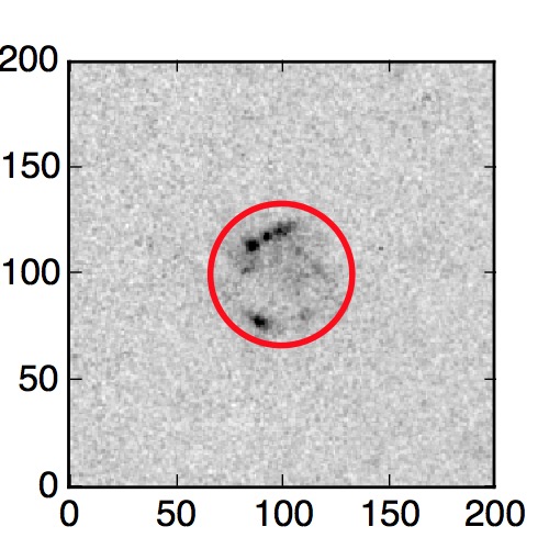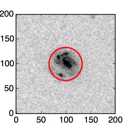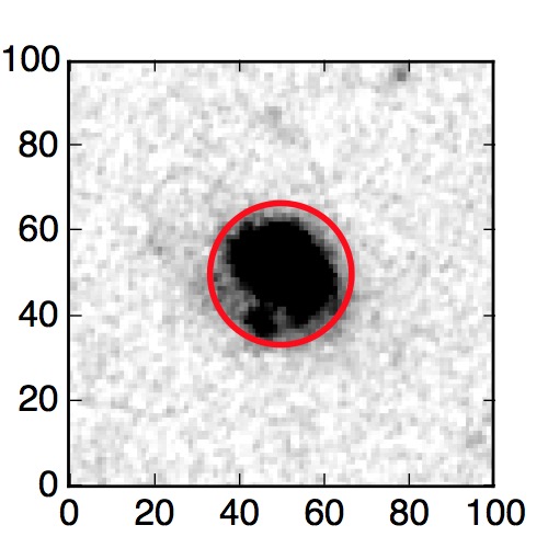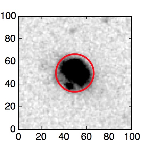 The red circle in the various panels is 1" in radius. The images are 6"x6".