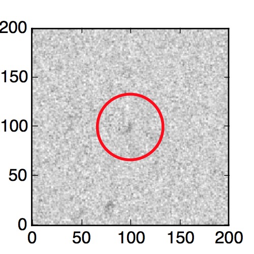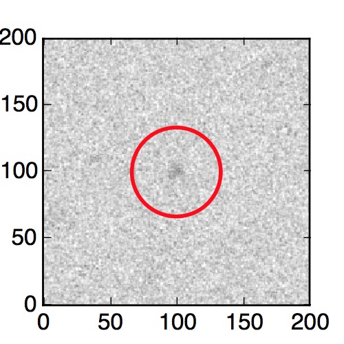 The red circle in the various panels is 1" in radius. The images are 6"x6".