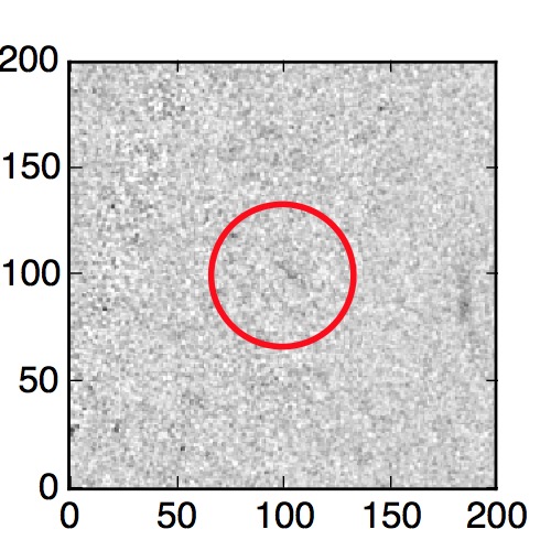 The red circle in the various panels is 1" in radius. The images are 6"x6".