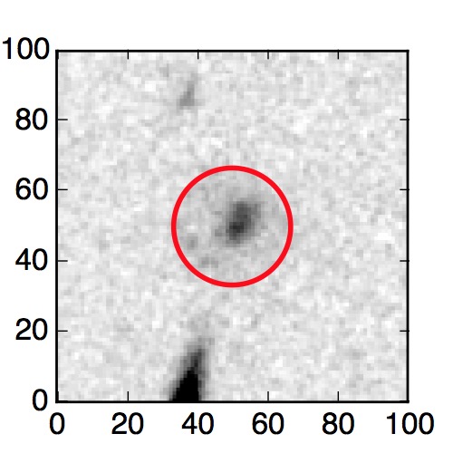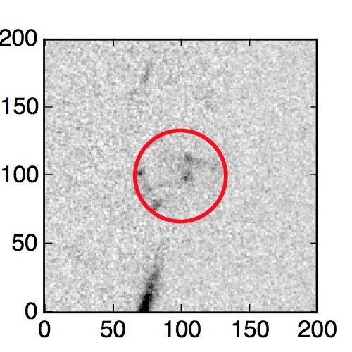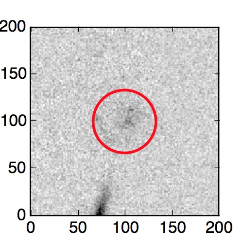 The red circle in the various panels is 1" in radius. The images are 6"x6".