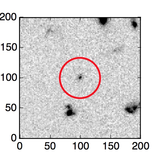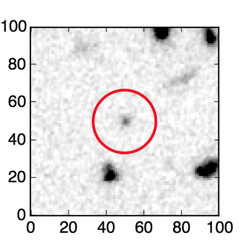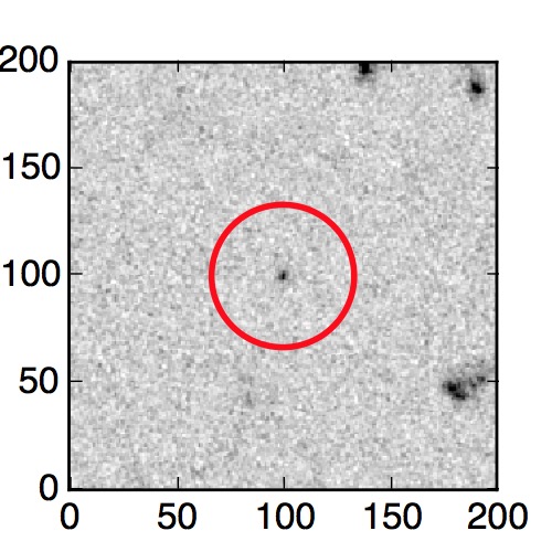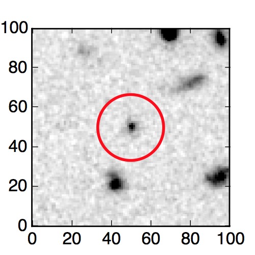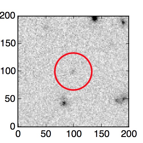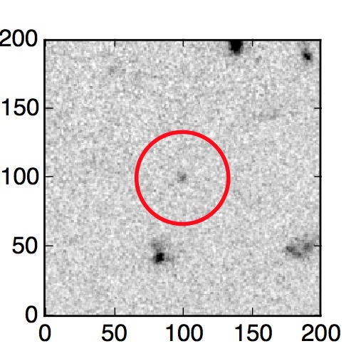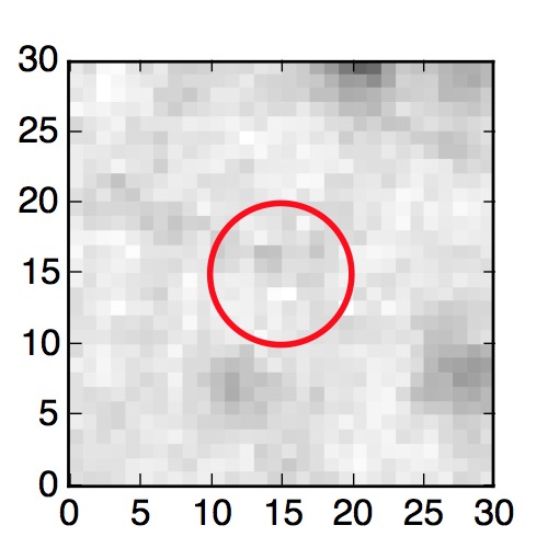 The red circle in the various panels is 1" in radius. The images are 6"x6".