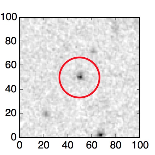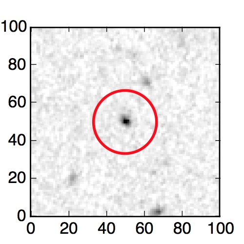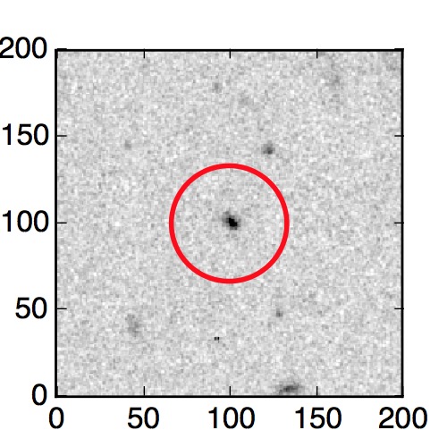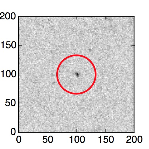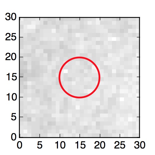 The red circle in the various panels is 1" in radius. The images are 6"x6".