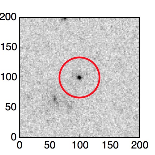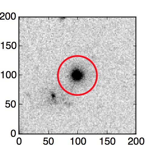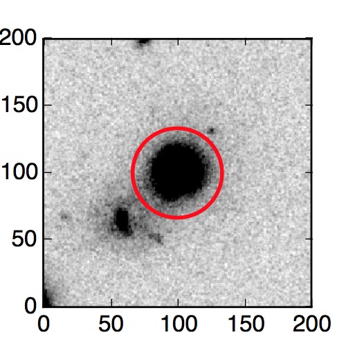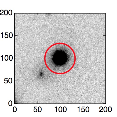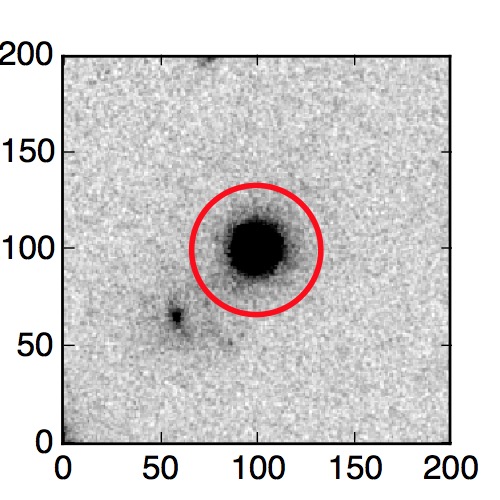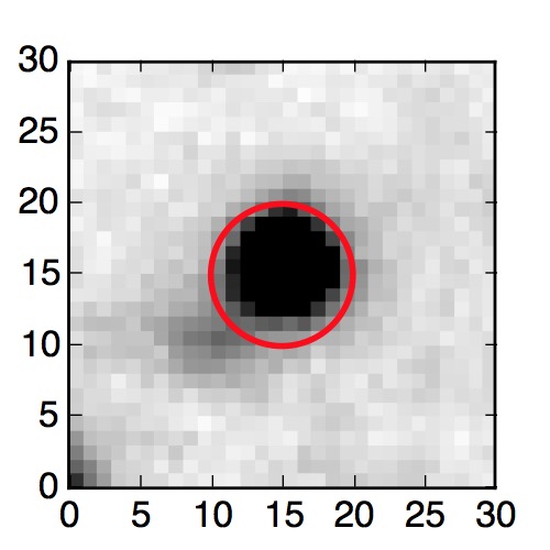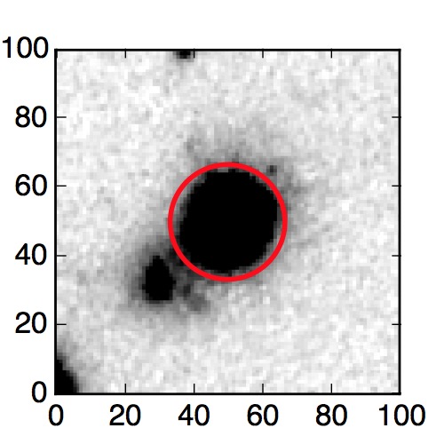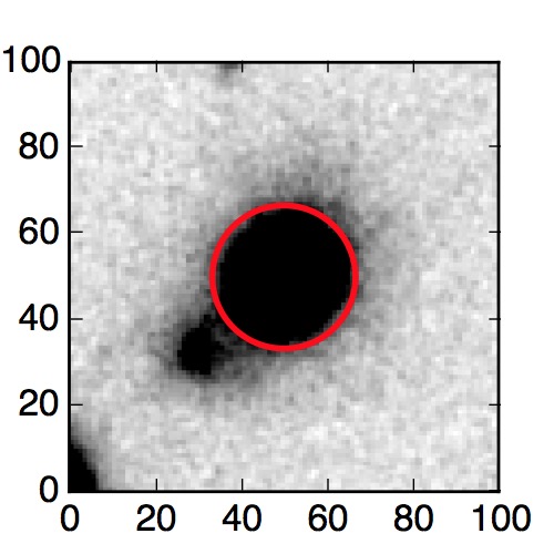 The red circle in the various panels is 1" in radius. The images are 6"x6".
