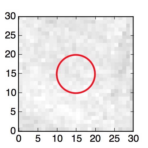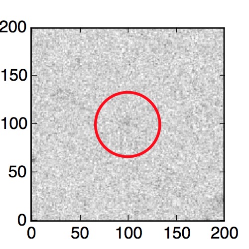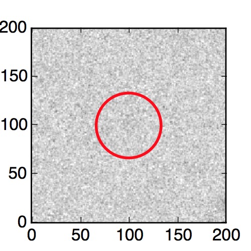 The red circle in the various panels is 1" in radius. The images are 6"x6".