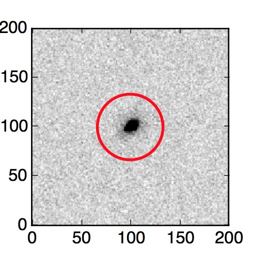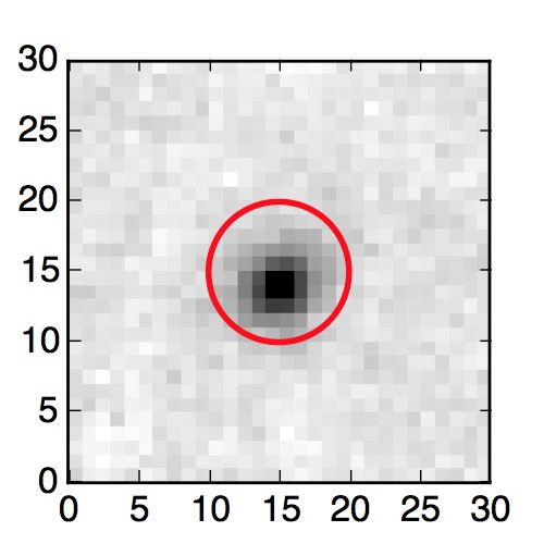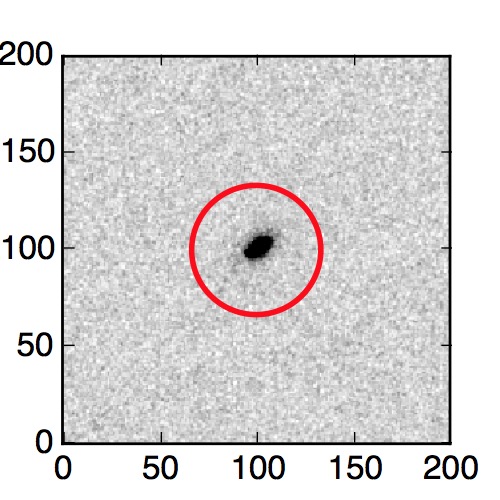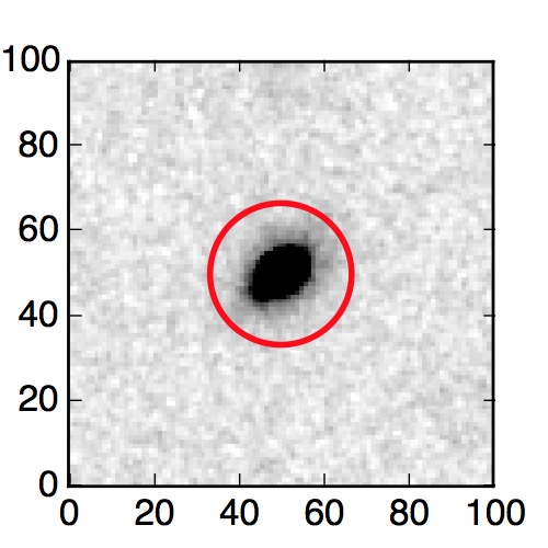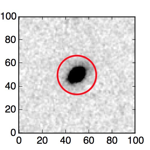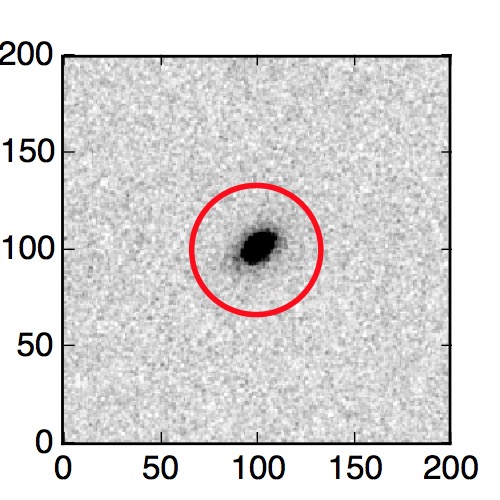 The red circle in the various panels is 1" in radius. The images are 6"x6".
