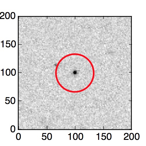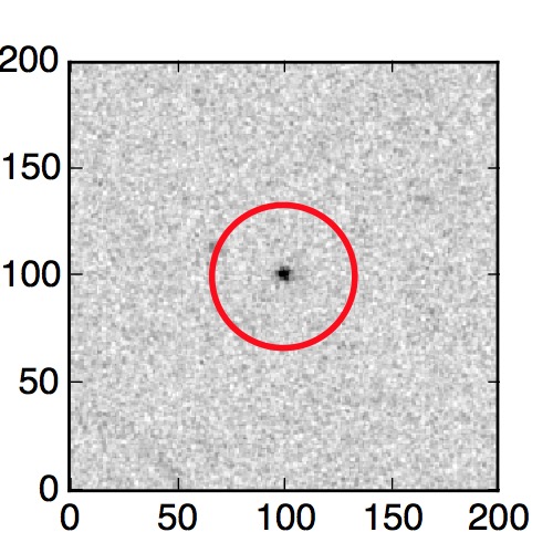 The red circle in the various panels is 1" in radius. The images are 6"x6".