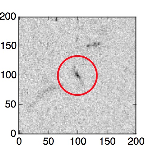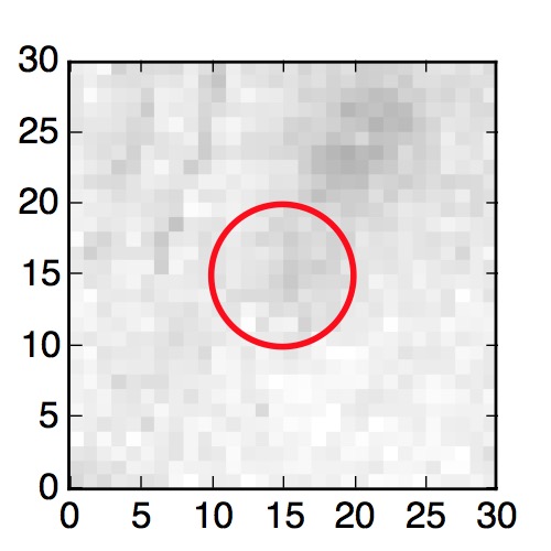 The red circle in the various panels is 1" in radius. The images are 6"x6".