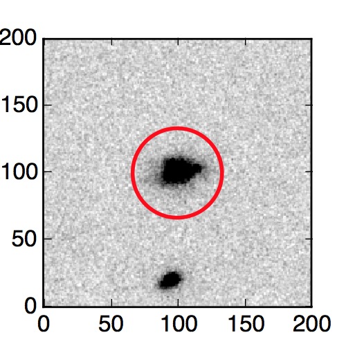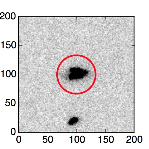 The red circle in the various panels is 1" in radius. The images are 6"x6".