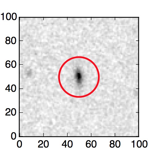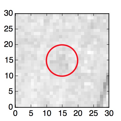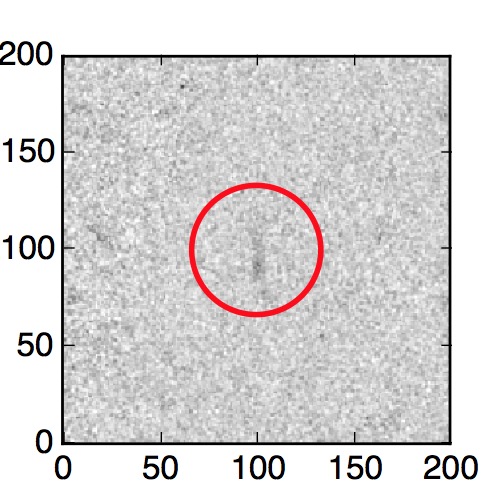 The red circle in the various panels is 1" in radius. The images are 6"x6".