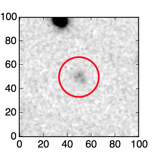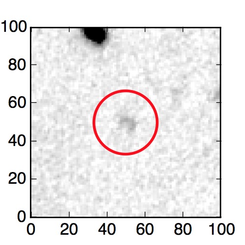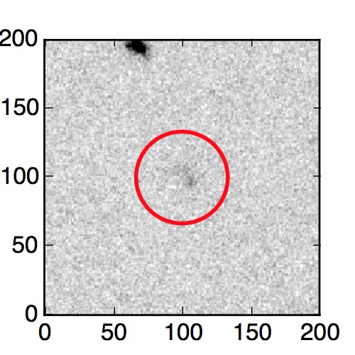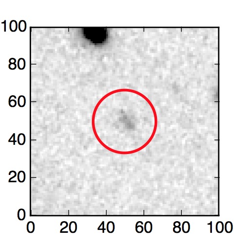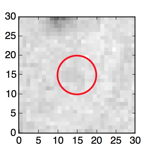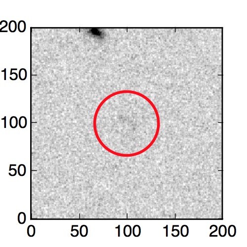 The red circle in the various panels is 1" in radius. The images are 6"x6".