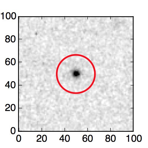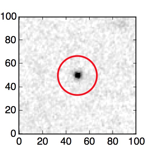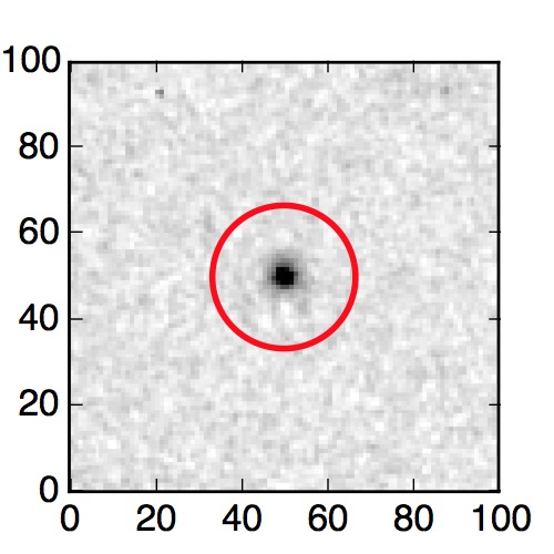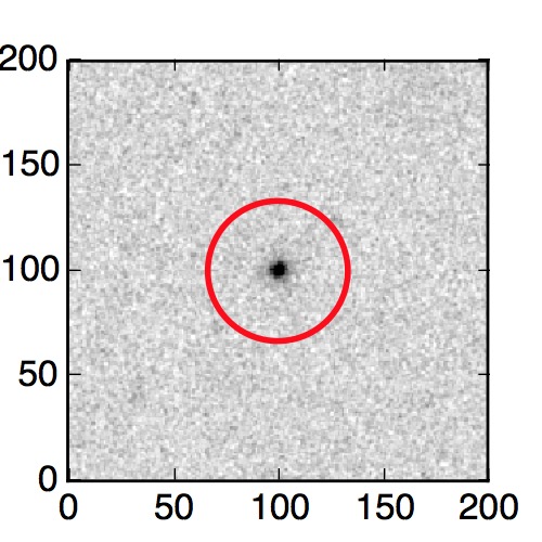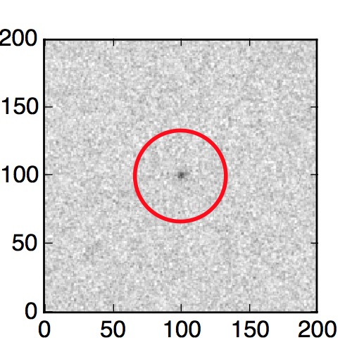The red circle in the various panels is 1" in radius. The images are 6"x6".
