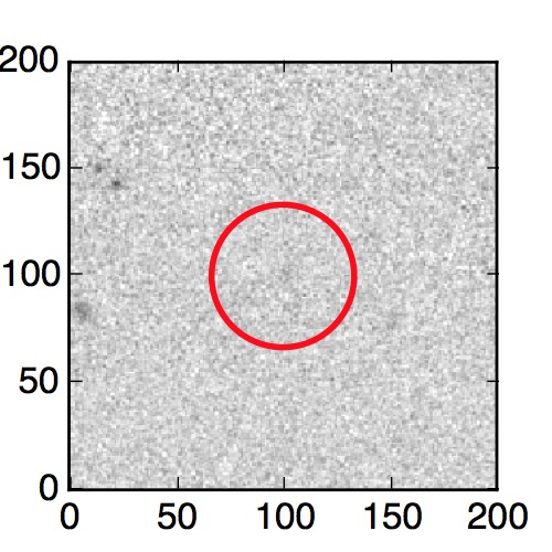 The red circle in the various panels is 1" in radius. The images are 6"x6".