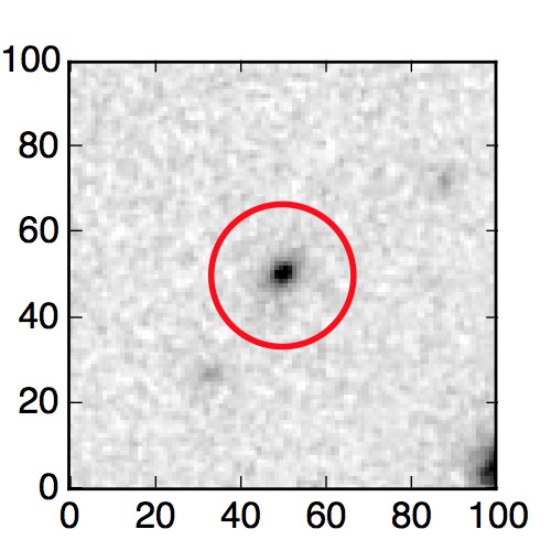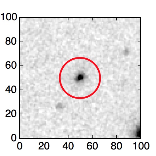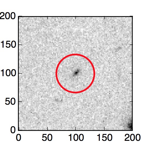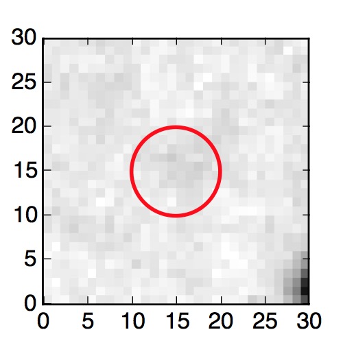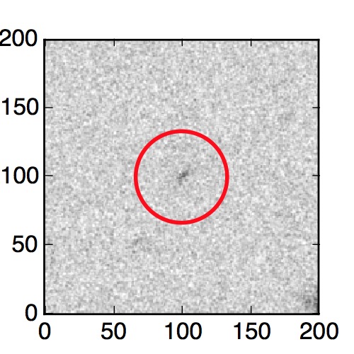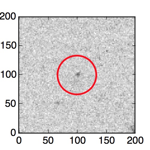 The red circle in the various panels is 1" in radius. The images are 6"x6".