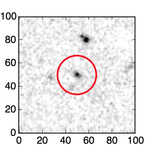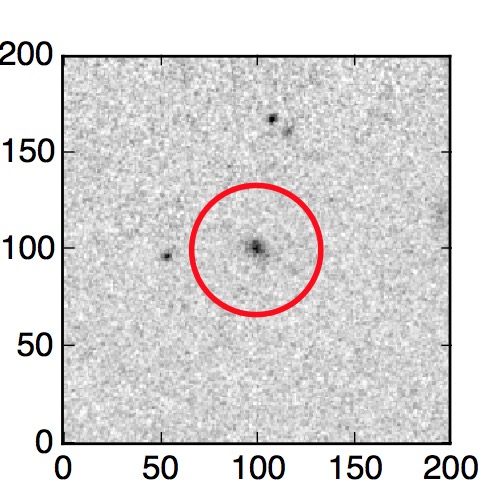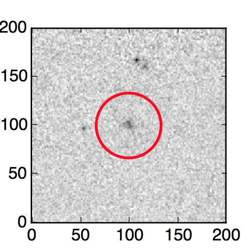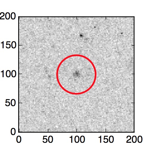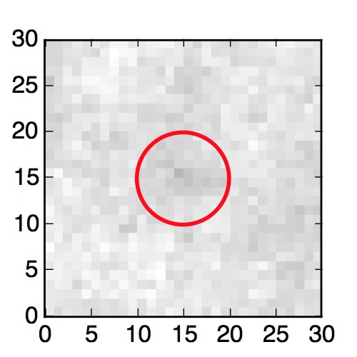 The red circle in the various panels is 1" in radius. The images are 6"x6".