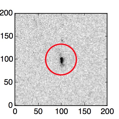 The red circle in the various panels is 1" in radius. The images are 6"x6".
