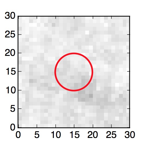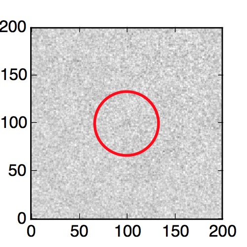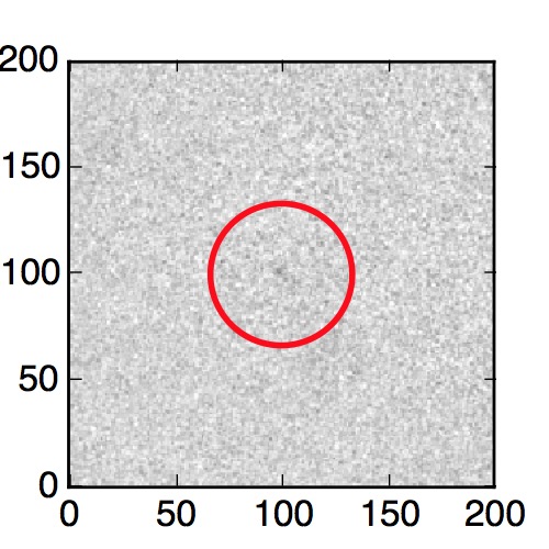 The red circle in the various panels is 1" in radius. The images are 6"x6".