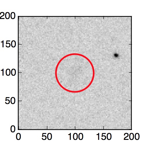 The red circle in the various panels is 1" in radius. The images are 6"x6".