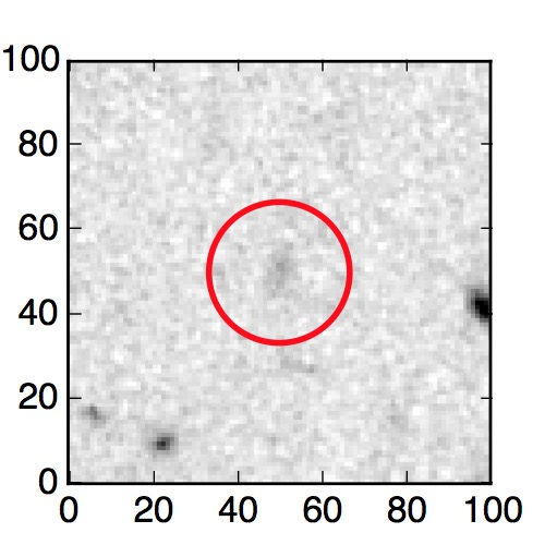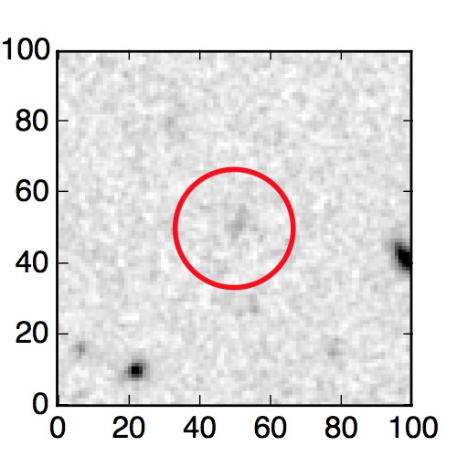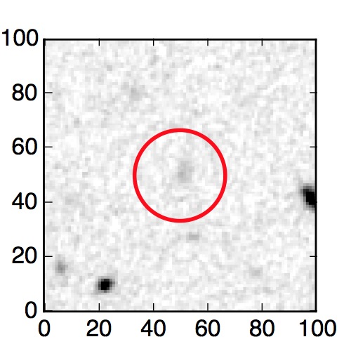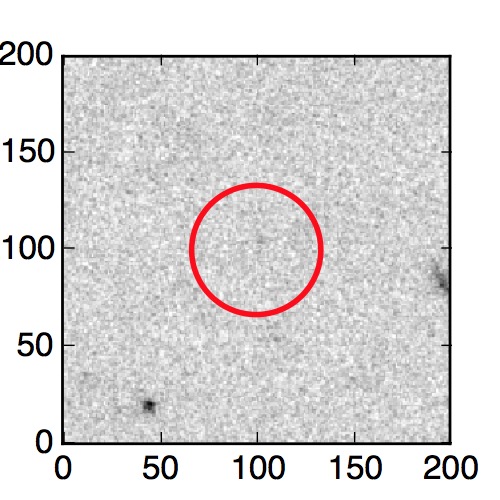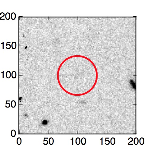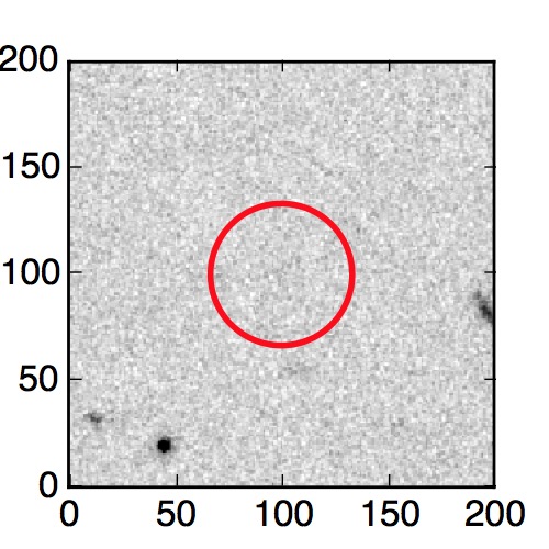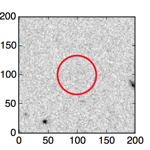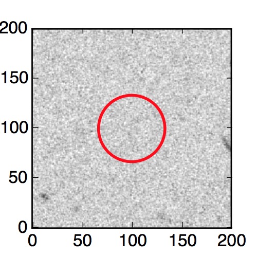 The red circle in the various panels is 1" in radius. The images are 6"x6".