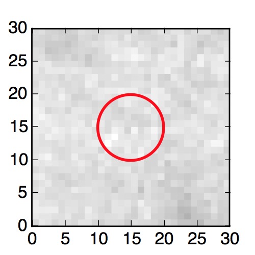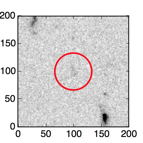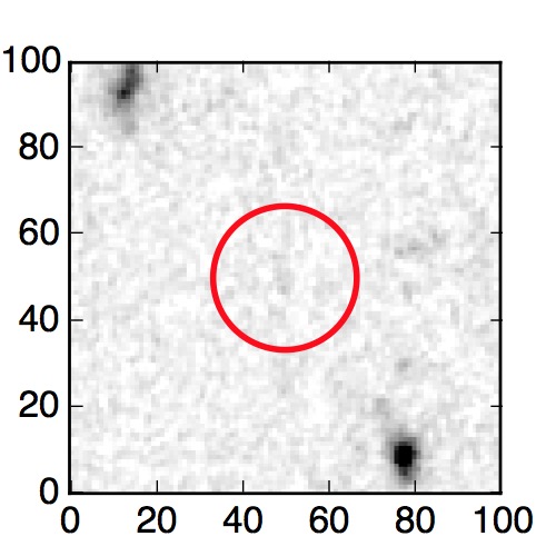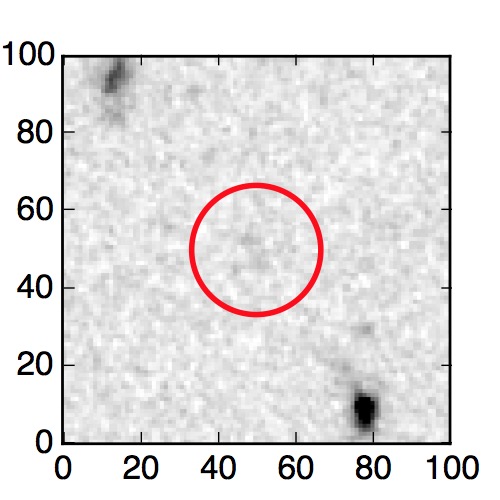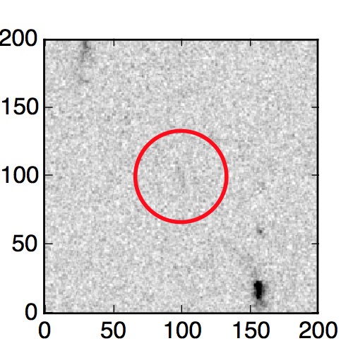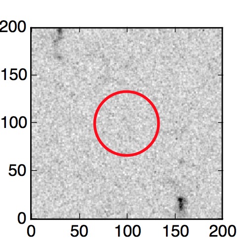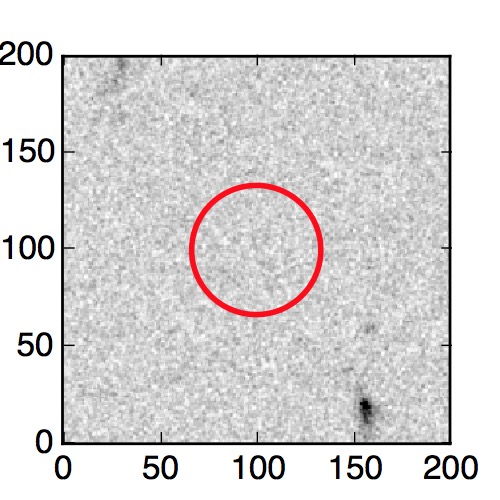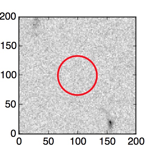 The red circle in the various panels is 1" in radius. The images are 6"x6".
