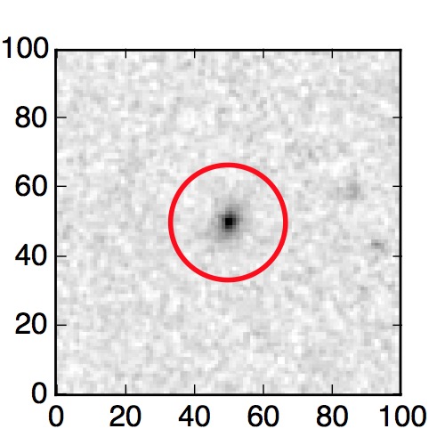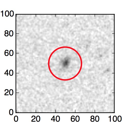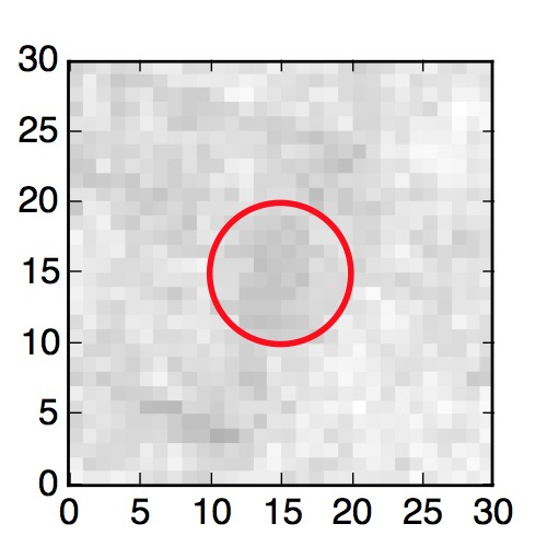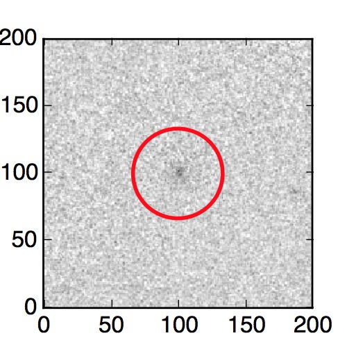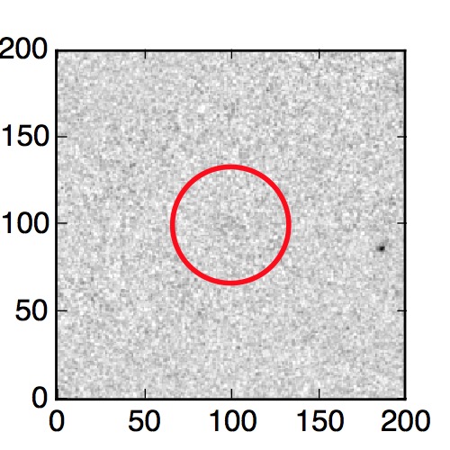 The red circle in the various panels is 1" in radius. The images are 6"x6".