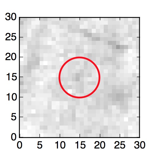 The red circle in the various panels is 1" in radius. The images are 6"x6".