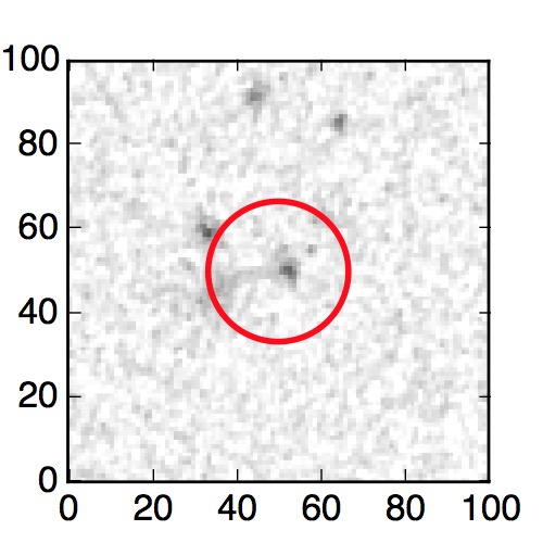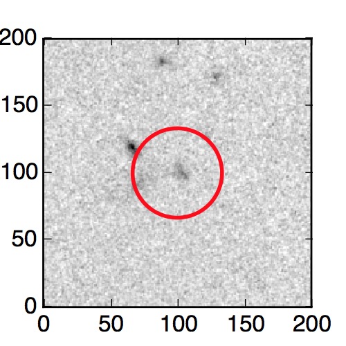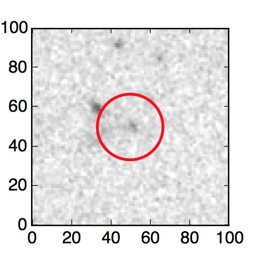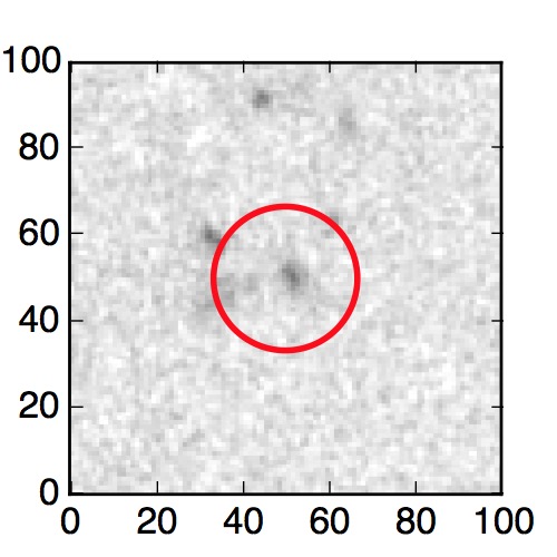 The red circle in the various panels is 1" in radius. The images are 6"x6".