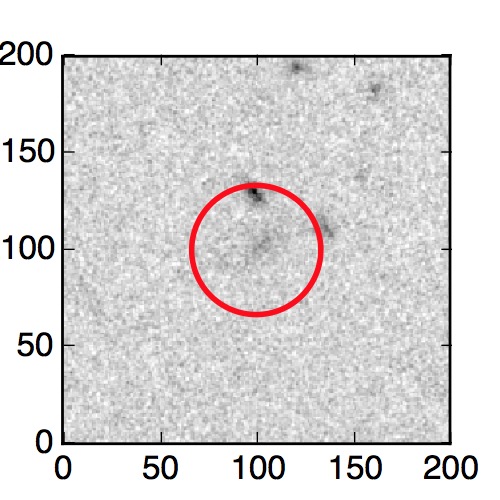 The red circle in the various panels is 1" in radius. The images are 6"x6".