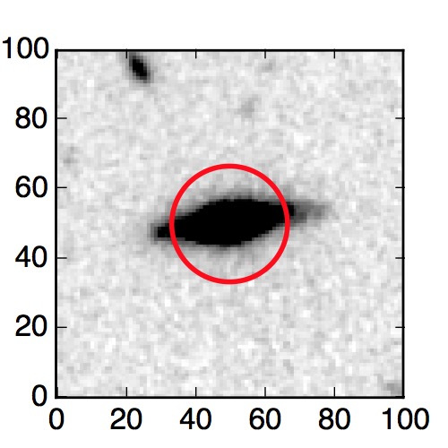 The red circle in the various panels is 1" in radius. The images are 6"x6".