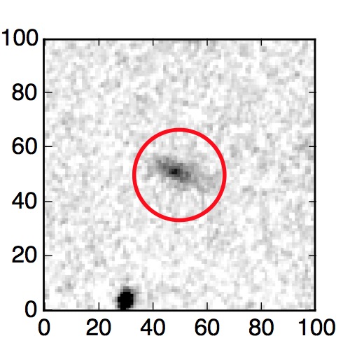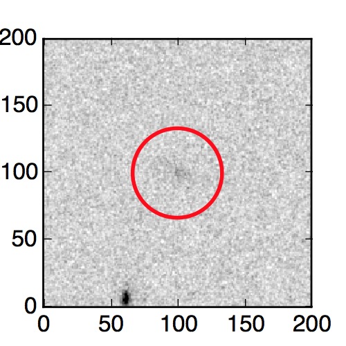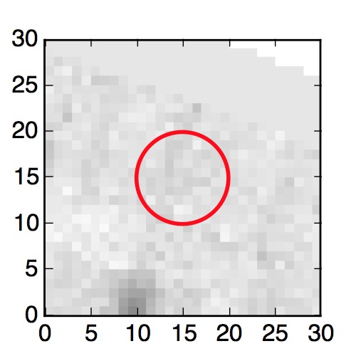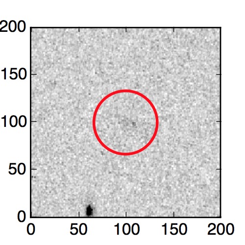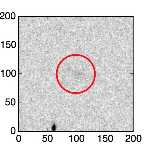 The red circle in the various panels is 1" in radius. The images are 6"x6".
