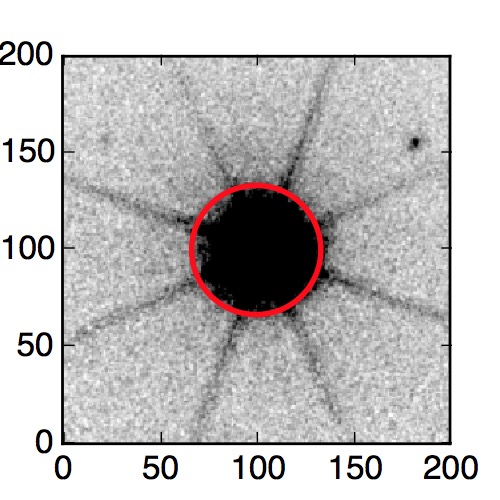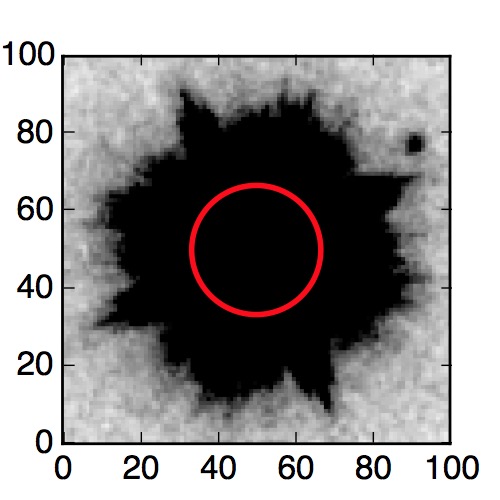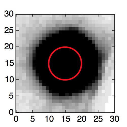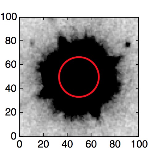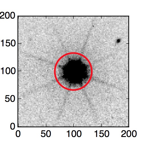 The red circle in the various panels is 1" in radius. The images are 6"x6".