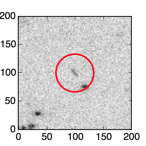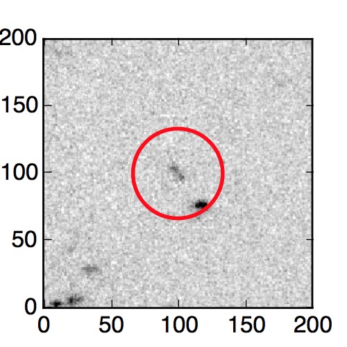 The red circle in the various panels is 1" in radius. The images are 6"x6".