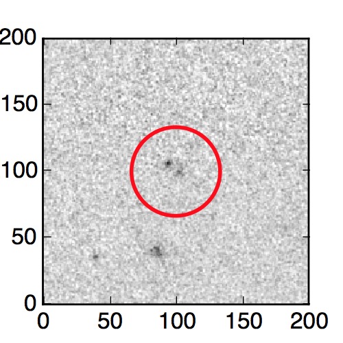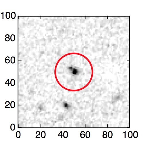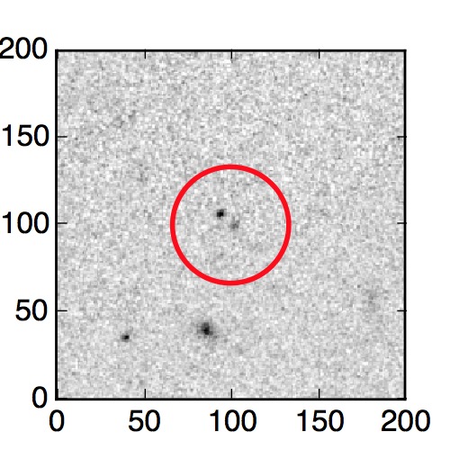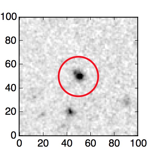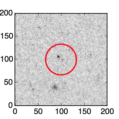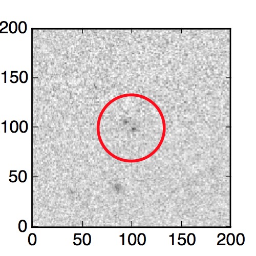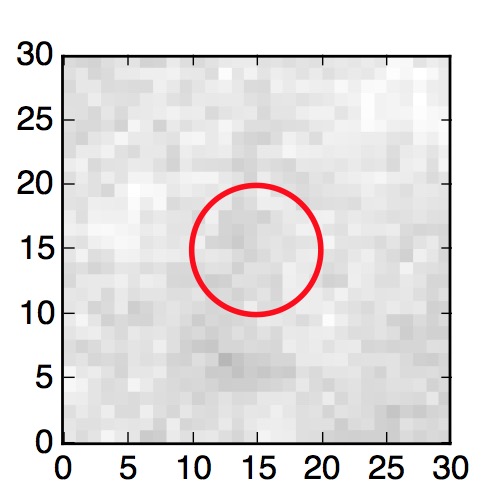 The red circle in the various panels is 1" in radius. The images are 6"x6".