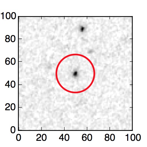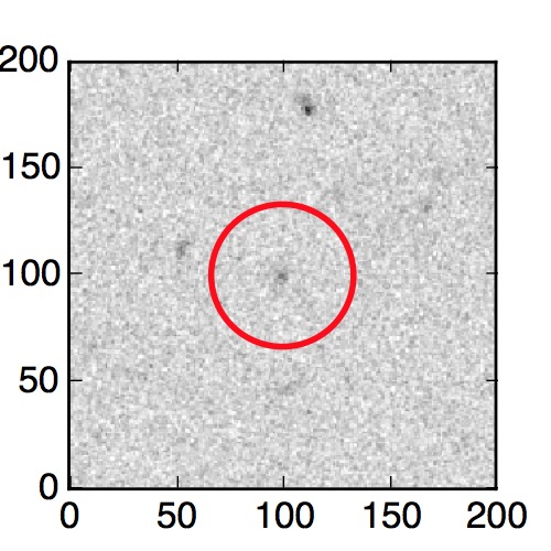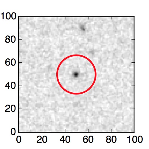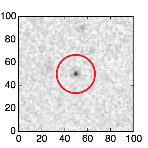 The red circle in the various panels is 1" in radius. The images are 6"x6".