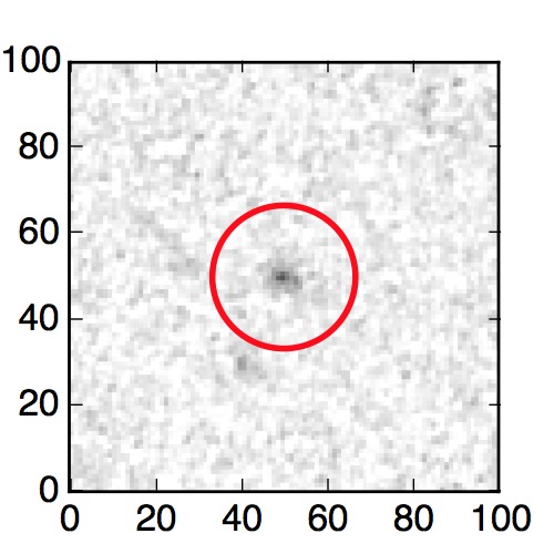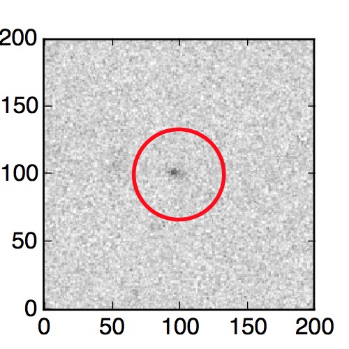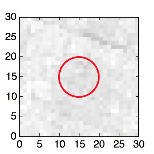 The red circle in the various panels is 1" in radius. The images are 6"x6".