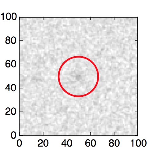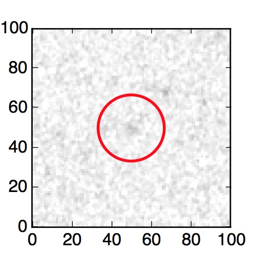 The red circle in the various panels is 1" in radius. The images are 6"x6".
