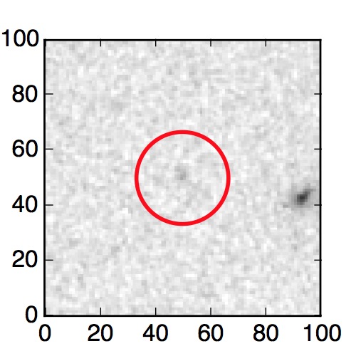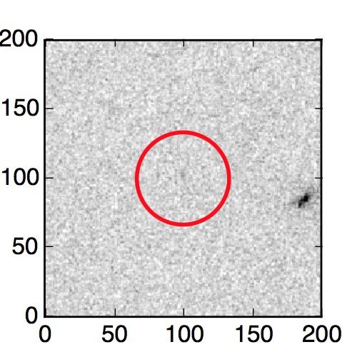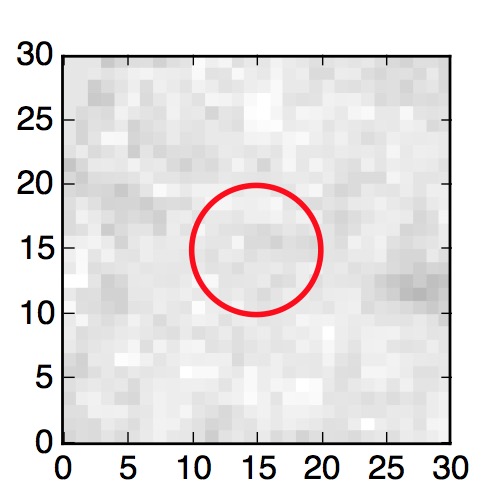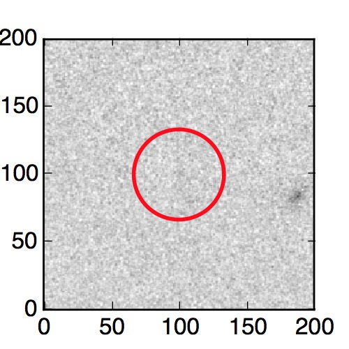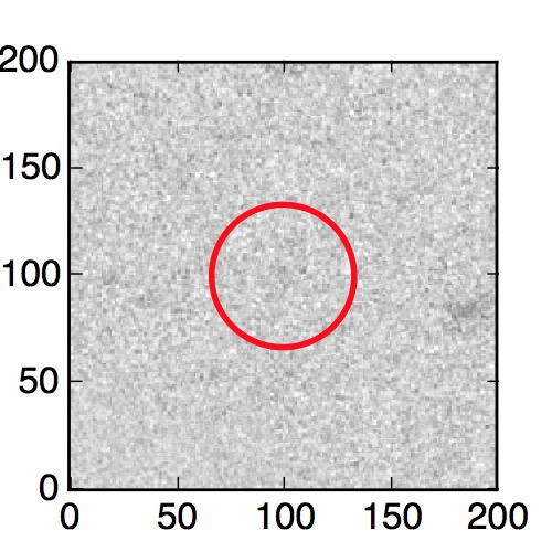 The red circle in the various panels is 1" in radius. The images are 6"x6".