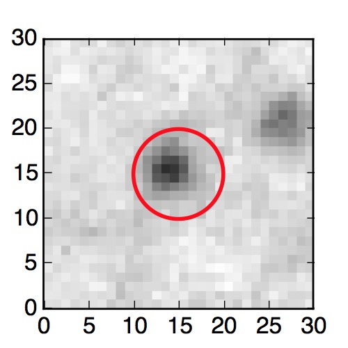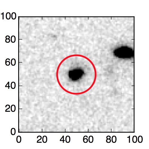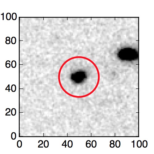 The red circle in the various panels is 1" in radius. The images are 6"x6".