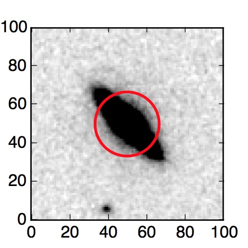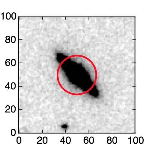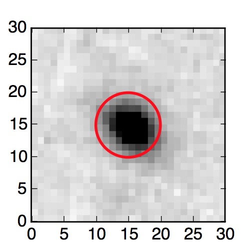 The red circle in the various panels is 1" in radius. The images are 6"x6".