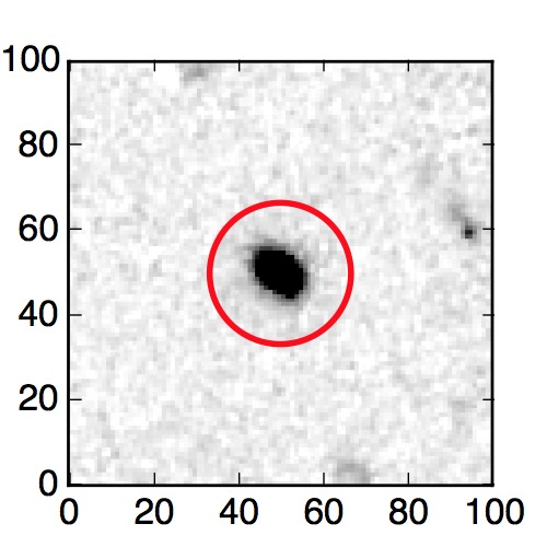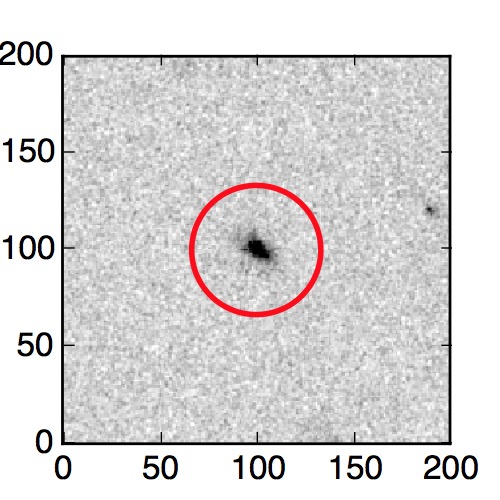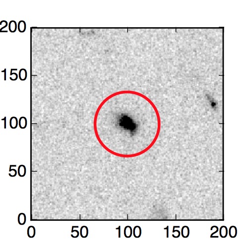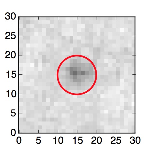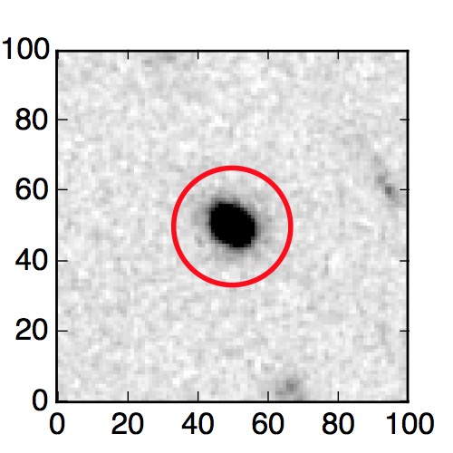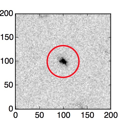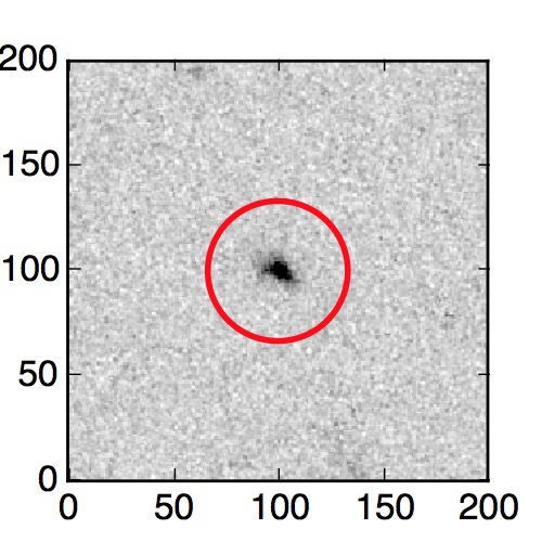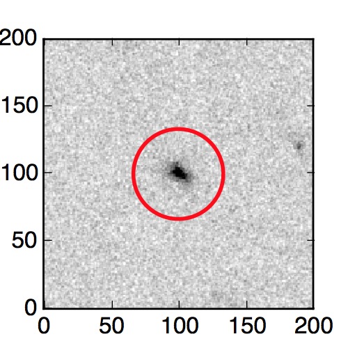 The red circle in the various panels is 1" in radius. The images are 6"x6".